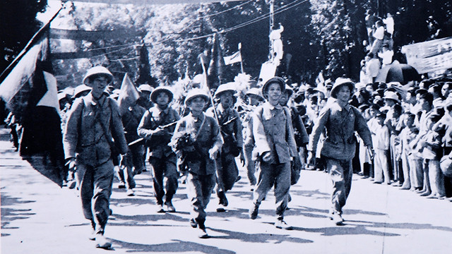 Bộ đội tiến vào phố Đinh Tiên Hoàng. Ảnh: THÂN TRỌNG NINH