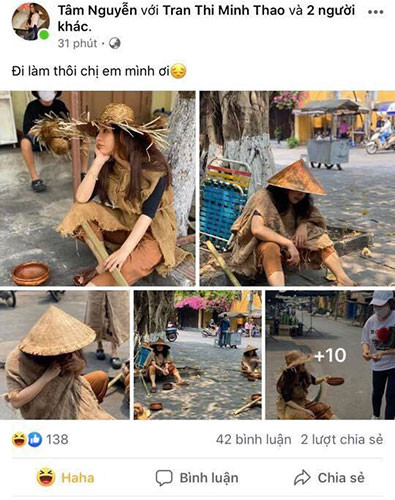 Trước đó, ngày 31-3, nhóm đối tượng này đến TP Hội An hóa trang thành người ăn xin đầu đội nón lá, mũ lát, mặc áo làm bằng bao bố, đi dép tổ ong, tay cầm gậy tre và nồi đất nung; rồi chụp ảnh và đưa hình lên facebook cá nhân, gây phản cảm trong lúc thành phố Hội An đang cùng cả nước tập trung phòng, chống dịch Covid-19.