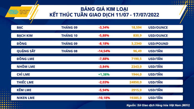 Đáng chú ý, giá quặng sắt đã có tuần sụt giảm mạnh mẽ gần 15% và đánh mất mốc 100 USD/tấn. Nguyên nhân chính là do khủng hoảng trong lĩnh vực bất động sản Trung Quốc, khi nhiều người mua nhà đang tẩy chay việc thanh toán khoản thế chấp và khiến nợ xấu lên tới 312 triệu USD. Bên cạnh đó, tình hình thời tiết khắc nghiệt với các đợt nắng nóng ở miền bắc và miền trung, trong khi mưa lớn gây ra lũ lụt ở miền nam quốc gia này đã làm gián đoạn nhu cầu sử dụng sắt thép trong xây dựng.