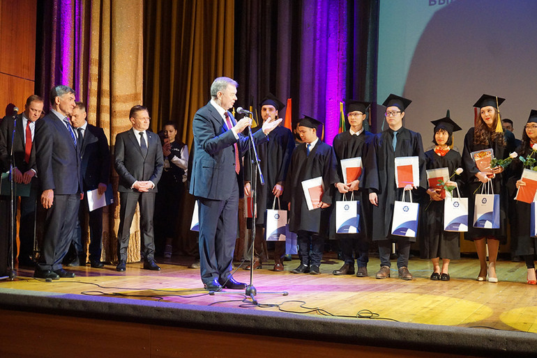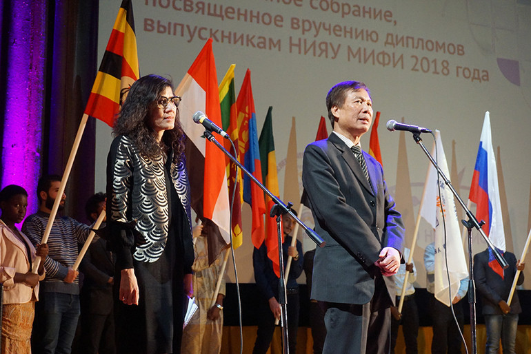 Có mặt tại buổi lễ, Công sứ Đại sứ quán Việt Nam tại LB Nga Lại Ngọc Đoàn đã nhiệt liệt chúc mừng tất cả các bạn sinh viên đã tốt nghiệp ngày hôm nay. Ông hy vọng với những tấm bằng tốt nghiệp, cùng với những kiến thức nhận được từ nhà trường, các em sẽ góp phần cho sự phát triển kinh tế của đất nước. Ông khẳng định các em sẽ mãi là cầu nối hữu nghị và hợp tác giữa Việt Nam và nước Nga. Thay mặt Đại sứ quán Việt Nam ở LB Nga, ông gửi lời cám ơn chân thành tới các thầy, cô giáo ở trường và sự quan tâm giúp đỡ của tập đoàn Rosatom.