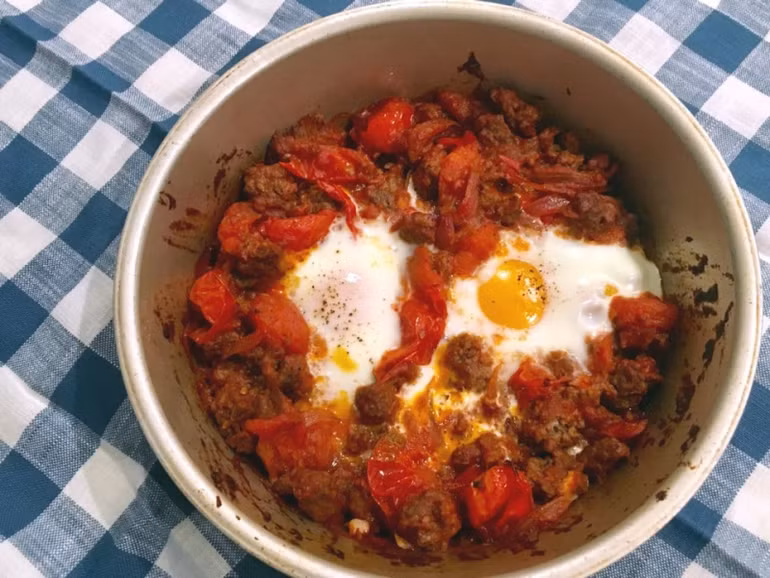 Bữa sáng nhiều mầu sắc ở Israel có tên gọi shakshuka - thành phần trứng được nướng trong sốt cà chua, nêm thêm chút vị cay của ớt cayen, thì là Ai Cập hoặc ớt ngọt.