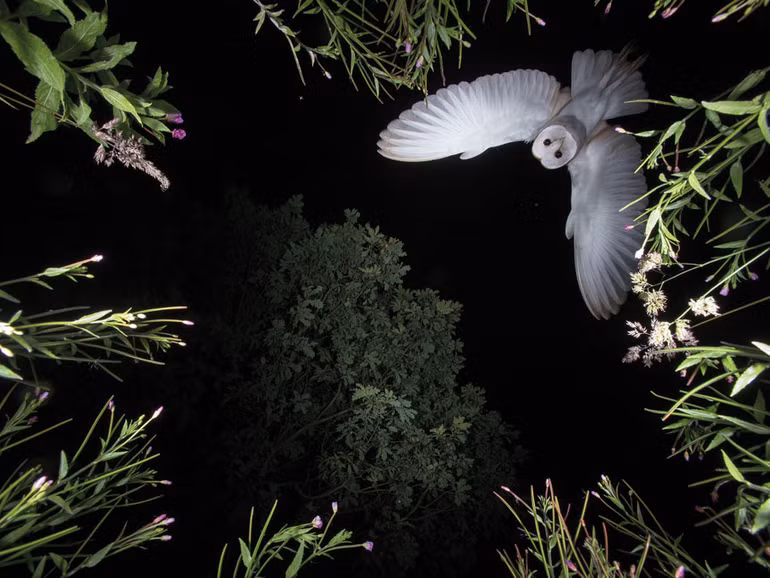 “Cú lợn xám lượn trên không” bởi Roy Rimmer, Anh, danh mục Hành vi.