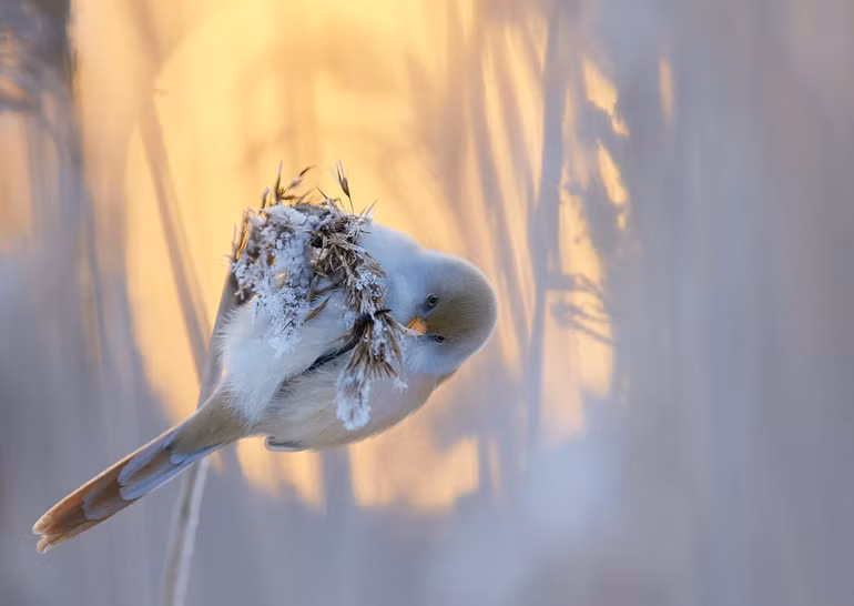 “Hoàng hôn của sẻ ngô râu” của Markus Varesvuo, Helsinki, Phần Lan, chiến thắng trong danh mục Phong cách và vị trí danh dự trong hạng mục ảnh Chân dung đẹp nhất.