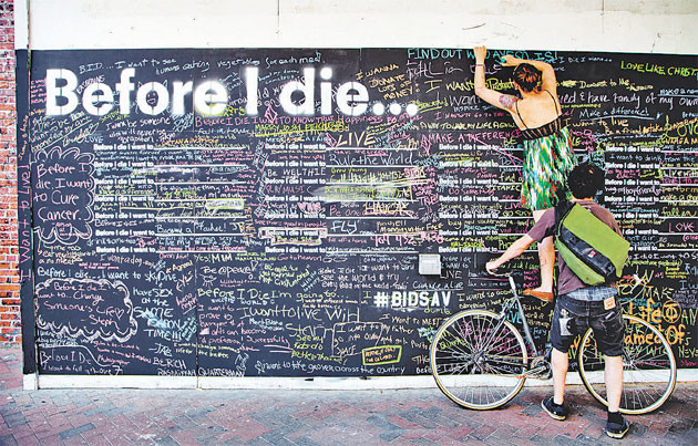 Cô tự hỏi liệu người khác có trải qua những khó khăn giống vậy và điều gì quan trọng với họ trong cuộc đời này. Với sự giúp đỡ từ những người bạn, cô đã biến một căn nhà bỏ hoang gần đó ở New Orleans thành một tấm bảng khổng lồ và mời những người khác chia sẻ suy nghĩ của mình bằng viết tiếp dòng chữ “Trước khi chết, tôi muốn...” Bất cứ ai đi qua đều có thể lấy phấn và viết nên cuộc đời của họ, chia sẻ những ước vọng cá nhân ở nơi công cộng này.