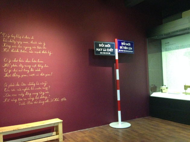 Đây là lần đầu Bảo tàng tổ chức trưng bày với sự tham gia của người dân, từ những phỏng vấn, trò chuyện cho đến tài liệu, hiện vật... Đây cũng là lần đầu tiên nhóm Curator thực hiện những ý đồ táo bạo trong trưng bày như cây cột chỉ đường, với hai tấm biển "Đổi mới hay là chết" và "Đổi mới để tiến lên", cũng như sắp đặt các hiện vật đối ngược ở gần nhau (bức tranh cổ động và nhóm hiện vật về tín ngưỡng, văn hoá tâm linh". Cùng với hiện vật là năm bộ phim tài liệu về giai đoạn Đổi mới do Bảo tàng kết hợp với Viện Phim Việt Nam trình chiếu.