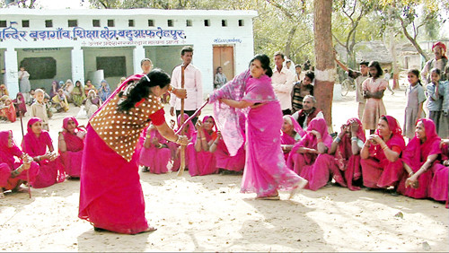 "Chúng tôi chống lại bọn hiếp dâm với cây gậy tre (lathis), và nếu tìm thấy thủ phạm chúng tôi đánh cho hắn một trận để hắn không bao giờ dám có ý định xấu với phụ nữ nữa”, bà mẹ năm con Sampat Devi Pal, sinh năm 1958, người thành lập nhóm nói. Devi lần đầu tiên sử dụng “vũ khí” này năm 1980 khi bà cố ngăn cản một người hàng xóm ở huyện Banda đánh đập vợ và cũng bị gã đánh. Hôm sau bà quay lại với năm phụ nữ khác với cây gậy tre và đập gã đàn ông vũ phu một trận tơi bời. Sự can thiệp của bà Devi có kết quả và ông chồng ngoan cố buộc phải thay đổi cách thức của gã. Quan trọng hơn, phản ứng của bà Devi chống lại bất công đã khơi gợi cảm hứng hình thành nên một phong trào giờ đã lan rộng với khoảng 400 nghìn phụ nữ mặc áo sari mầu hồng, tay cầm gậy - hình ảnh quen thuộc của Nhóm Gulabi (nhóm áo hồng), trong 17 huyện của tỉnh lớn nhất Ấn Độ Uttar Pradesh, vùng Bundelkhand - nơi hơn 20% trong số hơn 1,6 triệu người sống trong 600 ngôi làng thuộc tầng lớp hạ đẳng.