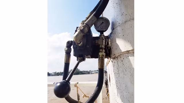 Phà từ Châu Đốc (An Giang) có tải trọng 70 tấn đều đặn qua lại dòng Hậu Giang.