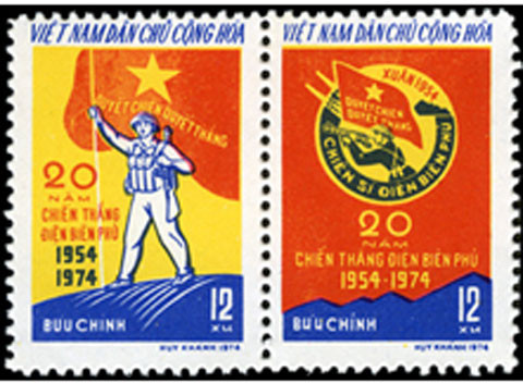 * “Kỷ niệm 20 năm chiến thắng Điện Biên Phủ” gồm hai mẫu tem, phát hành ngày 7-5-1974;