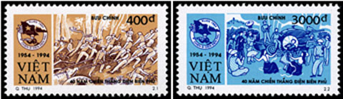 * “Kỷ niệm 40 năm chiến thắng Điện Biên Phủ” gồm hai mẫu tem, phát hành ngày 7-5-1994;