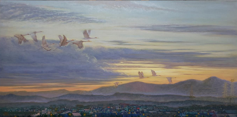 | Sương tan miền trung du - tác giả Nguyễn Mạnh Hùng, chất liệu acrylic. |