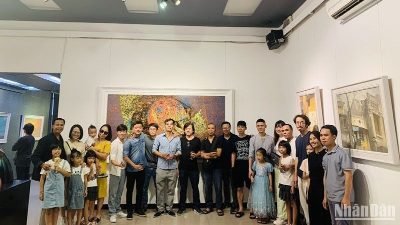 | Các nghệ sĩ tại triển lãm. (Ảnh: TRUNG HƯNG) |