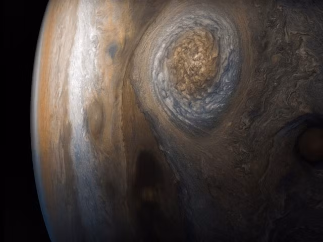 Bức ảnh của tàu Voyager chụp từ khoảng cách hơn 40 triệu km, trong khi tàu thăm dò Juno chụp tấm ảnh khi nó bay cách cơn bão chỉ khoảng 9000 km.