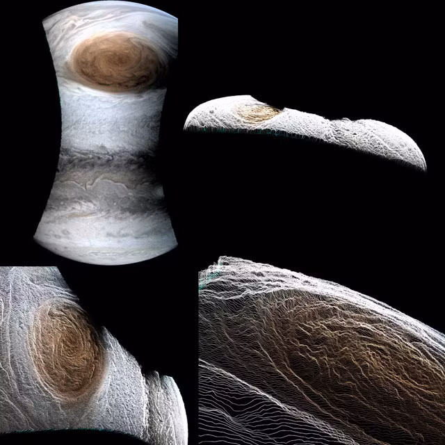 Các bức ảnh 3D đã cho thấy chiều sâu những lớp mây của cơn bão. Các cơn gió của Vết Đỏ Lớn có tốc độ lên tới 643km/giờ.