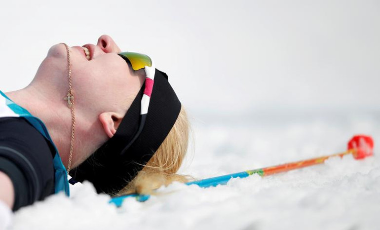 Ekaterina Moshkovskaia, vận động viên từ Nga trong phần thi khiếm thị 6km nữ. (Ảnh: REUTERS / Carl Recine)