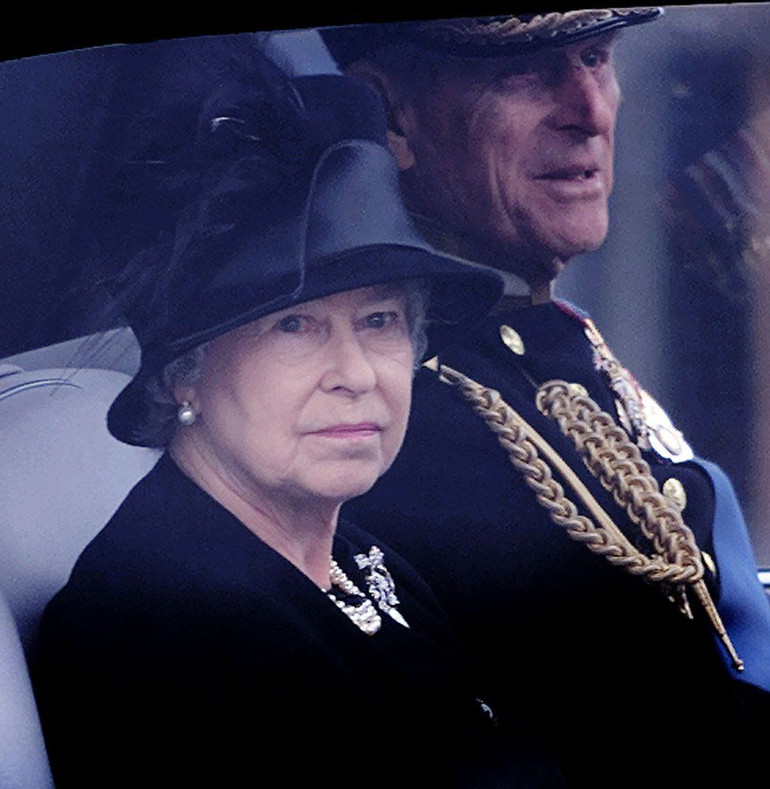 Hình ảnh tại đám tang mẫu thân nữ hoàng năm 2002.