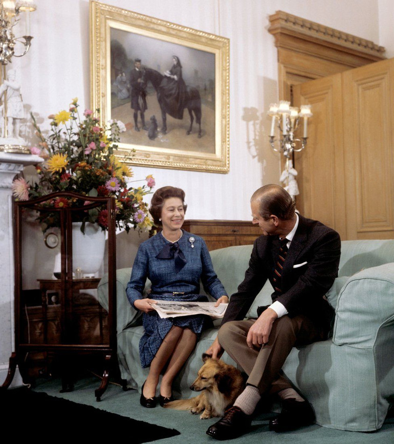 Cặp vợ chồng tại lâu đài Balmoral với Tinker, chú chó của gia đình.