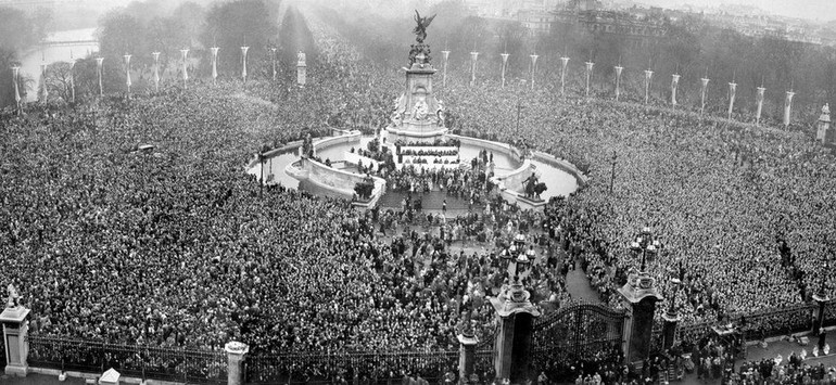 Đám đông tụ tập chiêm ngưỡng cặp đôi mới cưới ngoài cung điện Buckingham.
