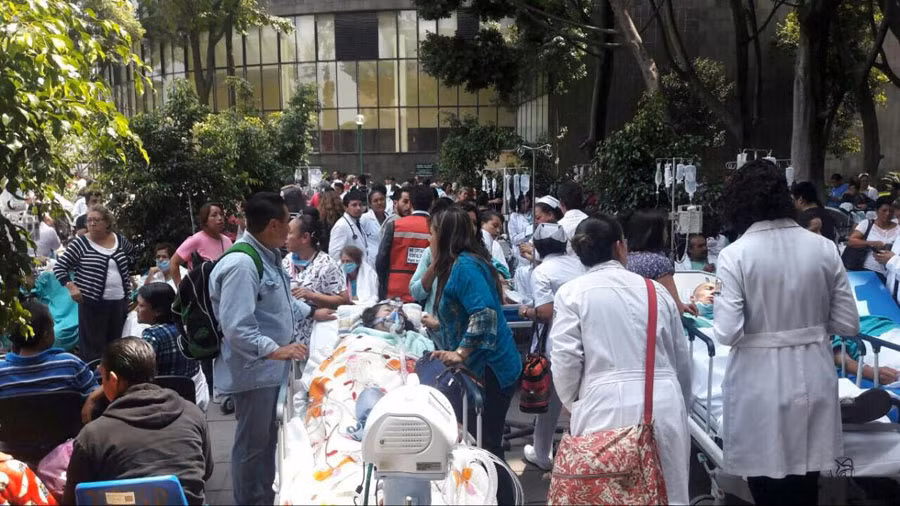 Các bệnh nhân được sơ tán khỏi các bệnh viện bị hư hại ở Mexico City. (Ảnh: Reuters)