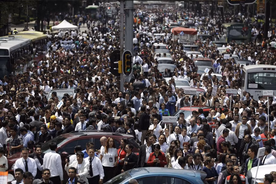 Người dân Mexico City sơ tán và tụ tập ở Đại lộ Reforma sau trận động đất. (Ảnh: AP)