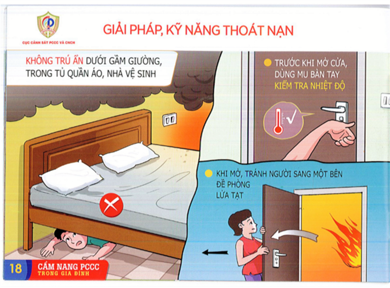 Tuyệt đối không xông qua đám cháy. Luôn giữ cơ thể ở vị trí thấp để tìm đường thoát hiểm, phòng bị nhiễm khói.