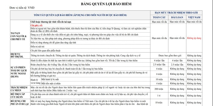 Một số quyền lợi bảo hiểm (mang tính tham khảo) của một trong những công ty bảo hiểm uy tín ở Việt Nam.