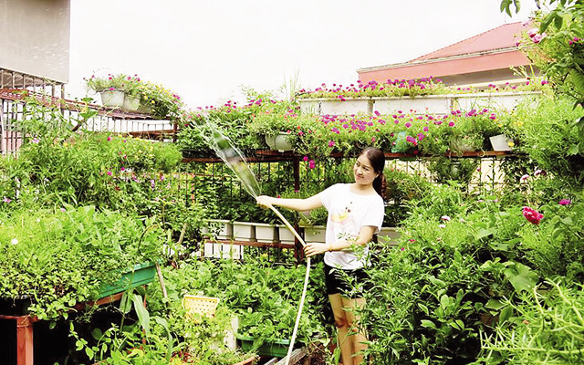 Nhờ sắp xếp, tận dụng không gian chật hẹp ở nhà phố, nhiều người đã có rau sạch để ăn theo mùa.