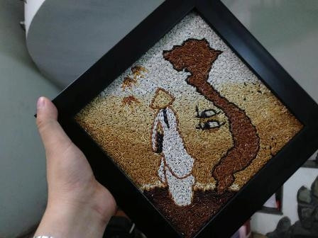 Để tạo nên một tác phẩm tranh gạo, bạn Phuc Nguyen đã phải bỏ khá nhiều công sức, từ tìm kiếm chọn gạo, rang gạo, phác thảo cho đến sắp xếp gạo, phun keo, phơi tranh, xử lý hóa chất... Các hạt gạo rang thường có gam màu ấm, tạo cảm giác hơi hoài cổ, rất phù hợp với đề tài dân gian Việt Nam, giúp những người nơi đảo xa vơi nỗi nhớ nhà.