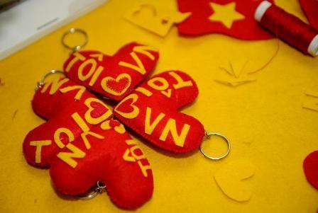 Bày tỏ lòng khâm phục các chiến sĩ nơi đảo xa, nhóm “Nhịp Sống Trẻ” lại có cách thể hiện khá giản dị nhưng sâu sắc. Các bạn trẻ đã tự tay làm rất nhiều những móc khóa nhồi bông rất xinh xắn, với hai màu chủ đạo màu đỏ và màu vàng thể hiện cho màu cờ đất nước, để nhắn nhủ với những người dân trên đảo rằng những người dân đất liền luôn hướng về họ.