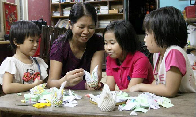 Mẹ Khuất Thị Lợi cùng các con ở nhà B7 - Hoa loa kèn - Làng trẻ em SOS Hà Nội.
