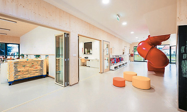 Ở Slovenia, vườn trẻ Smartno Timeshare được thiết kế để khuyến khích bọn trẻ học bằng chơi. Trẻ em có hai, ba giờ một ngày để chọn làm điều chúng thích. Một khu vực mở rộng rãi với tám phòng kính nối với nhau bằng các cửa trượt có thể thích ứng với các trò chơi đa dạng của bọn trẻ. Có tới 65 góc hoạt động cho trẻ em, và để thêm phần sinh động một ống trượt mầu đỏ nối hai tầng như một sự thay thế cho cầu thang bộ.