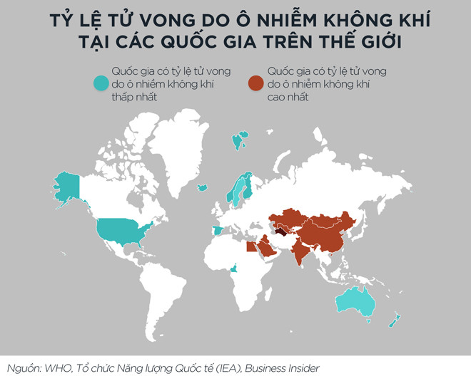 Tỷ lệ tử vong do chất lượng không khí tồi tệ phụ thuộc vào nhiều yếu tố ngoài ô nhiễm không khí như mật độ dân số.