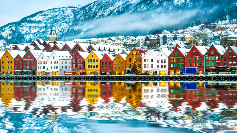 Mặc dù Na Uy trượt xuống vị trí thứ hai trong năm nay, nhưng sự khác biệt giữa năm quốc gia đứng đầu thực sự là rất nhỏ và không quá đáng ngạc nhiên. Thành phố Bergen trong hình là thành phố lớn thứ hai của Na Uy và được xây dựng cách đây hơn 900 năm.