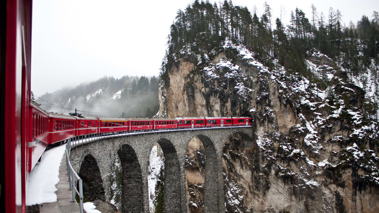 Đoàn tàu Glacier Express cuat Thụy Sĩ giúp người dân dễ dàng di chuyển qua những vùng tiêu biểu nhất của quốc gia hạnh phúc thứ năm trên thế giới. Đoàn tàu có các điểm dừng tại St. Moritz, làng Zermatt ở vùng núi Alps (với quan điểm của Matterhorn), Hẻm Núi Rhine, còn được gọi là Grand Canyon của Thụy Sĩ; và đèo Oberalp.