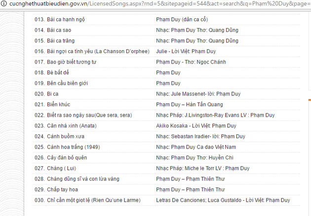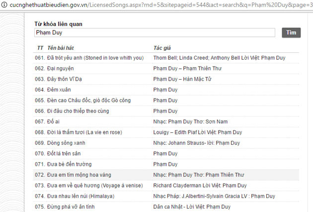 Nếu như đây là cơ sở để các địa phương tra cứu khi cấp phép, thì những sai sót này có thể dẫn đến hệ quả vi phạm quyền tác giả và cả những rắc rối khác trong việc thủ tục. Bởi thực tế cách đây không lâu, chính Cục NTBD cũng đã có một quyết định gây tranh cãi (và sau đó phải thu hồi quyền định đó), trong đó có bài hát Đừng gọi anh là chú không xác định được tác giả. Còn những tác giả không liên quan được gắn vào danh sách bài hát này, không rõ cục NTBD dựa trên cơ sở nào. Phạm Duy nếu có biết những điều này, có khi ông sẽ khóc mất.