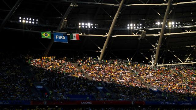 Khán đài chật kín người hâm mộ trong trận đấu giữa Brazil và Mexico ở vòng 16 đội World Cup 2018. (Ảnh: FIFA)