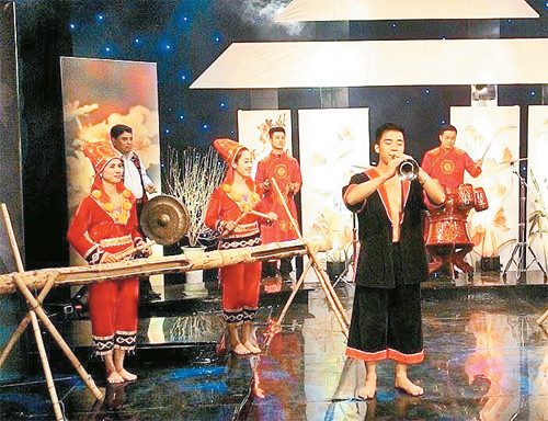 Hà Công Cương trong một chương trình biểu diễn nghệ thuật.