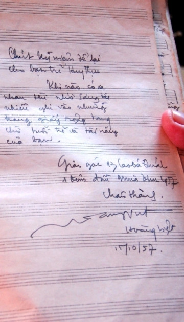 Cho đến bây giờ nhạc sĩ Huy Thục vẫn không khỏi bâng khuâng mỗi khi cầm trên tay quyển sổ nhạc với bút tích của người bạn, người đồng chí thân thiết - nhạc sĩ Hoàng Việt.