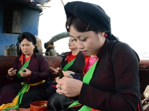 Hai hôm sau đó, tôi gặp một đội hình quan họ đông lên trông thấy, mà toàn là trẻ trung tươi mới, mặt ai nấy hớn ha hớn hở. Điệp - Yến mời hai liền anh là Văn Chung - Văn Hanh là diễn viên nhà hát, lại có Quyết là con nhà nghệ sĩ quan họ, làm cán bộ quân y Trường sĩ quan chính trị nhưng hát quan họ giọng rất khoẻ khoắn, với một em nữa gọi là “em bé”, đi theo các anh chị để học hỏi. Kiến tạo cuộc vui có Nguyễn Minh Cường nhà thơ trẻ của quân đội, người Thái Nguyên mà hát quan họ đến mức được… khen ngợi, kể cũng là điều đáng nể. “Bọn” này đều thuộc vào lứa 8X, 9X, lên mạng, “chơi” facebook, dùng đồ điện tử nhoay nhoáy, nhưng vào sân hát thì cũng không kém phần thiết tha. Kết nối đi cùng còn có hai liền chị nổi tiếng Sang - Thềm người làng Diềm thuỷ tổ quan họ, thuộc lứa trung niên kỳ cựu. Tất cả cô cháu theo phà cùng các văn nghệ sĩ mộ điệu từ bến đò Chì - Quế Võ theo sông Đuống về phía đền Kiếp Bạc - Hải Dương. Đi từ trưa đến tối muộn, trên sông nước tràn trề lấp lánh một chiều bồng bềnh ca hát. Hát cho khách nghe, giao lưu, giới thiệu, giải nghĩa, nói cái nết ăn nết ở, lối chơi, cách hát của người quan họ cho khách hiểu và hình dung bước đầu về các chặng hát, về văn hoá quan họ. Đó là kiểu sinh hoạt phổ biến của các nhóm quan họ ở Bắc Ninh những năm qua. Thỉnh thoảng tôi được dự những cuộc như vậy, nghe lại mà không lần nào không mê.
