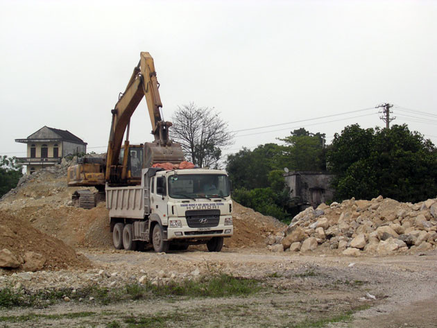Thi thoảng mới thấy máy xúc với vài xe ben chở đất san lấp công trình thì bao giờ hoàn thành!?
