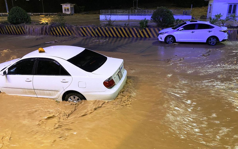 Tối qua 14/10, từ 20 giờ 30 phút, do mưa lớn kéo dài, nước bắt đầu dâng lên tầm 0,5m tại khu vực bùng binh nút giao Tạ Quang Bửu và đường dẫn phía nam hầm Hải Vân. Đến 20 giờ 40 phút, lũ quét tràn từ trên núi Hải Vân về trước quảng trường và đường dẫn cầu số 1,2 phía nam với dòng nước lớn chảy vào quảng trường trước cửa hầm phía nam, rất nguy hiểm cho người và phương tiện lưu thông.