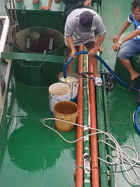 Vào lúc 14 giờ chiều 3-7, dầu từ tàu bị nạn đã được bơm sang tàu dầu An Hòa neo đậu tại cảng Phú Quý.