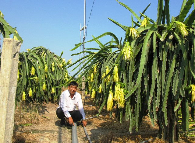Mô hình tưới nước tiết kiệm vườn cây thanh long ở Long An.