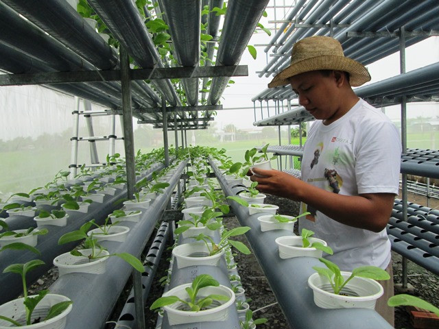 Trồng rau mô hình công nghệ cao giúp nông dân tránh hạn, mặn cho thu nhập tốt ở huyện Cần Giuộc (Long An).