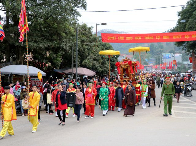 Đoàn rước lễ từ núi Bách Thần về trung tâm huyện Chiêm Hóa.