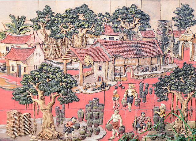 Tranh gốm của nghệ nhân làng Phù Lãng.
