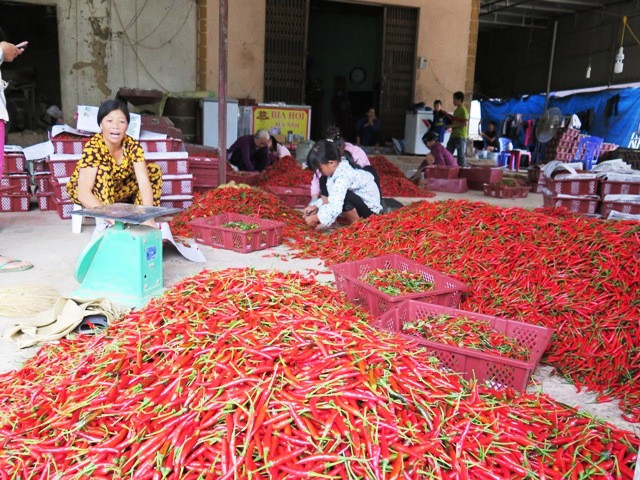 Bà con nông dân huyện Chi Lăng thu gom ớt để xuất khẩu qua biên giới.