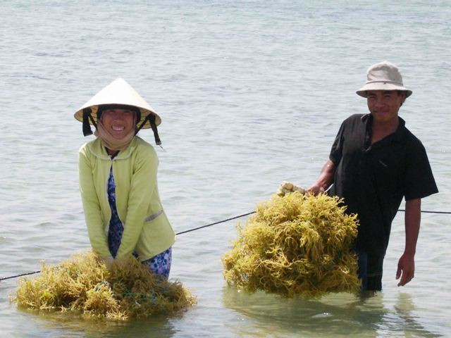 Cách đó khoảng 200m, hộ chị Mai Thị Liễu đầu tư 30 triệu đồng, thả nuôi tám sào, nhờ biển êm, rong sụn sinh trưởng tốt và không bị cá ăn tạp cắn phá, nên từ giữa tháng hai âm lịch năm 2018, gia đình thu hoạch lứa đầu tiên sớm hơn những hộ khác để chọn rong tươi phơi khô bán với giá cao. Chị Liễu cho biết, đã bán được 50 triệu đồng sản phẩm tươi và khô. Nếu trong hai tháng tư và năm sắp tới, biển không động, sẽ thu hoạch cuối vụ với năng suất cao hơn, gia đình thu nhập hơn 100 triệu đồng.