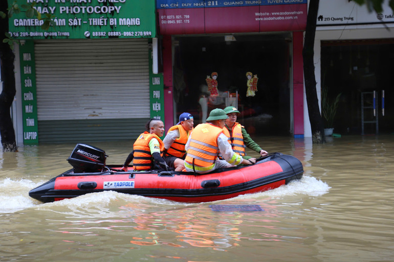 Theo thông tin từ UBND thành phố Tuyên Quang, nhiều xã, phường... nhà dân đều đã bị ngập. Lúc này, hầu hết các gia đình đều đã phải chuyển lên sinh hoạt tại khu vực tầng 2-3 do nước lên nhanh hoặc phải di chuyển đi xa để tránh lũ.