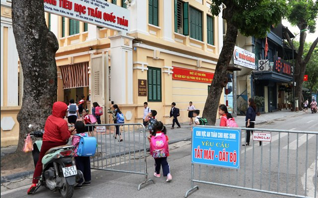 Trường Tiểu học Trần Quốc Toản hạn chế các phương tiện vào giờ đưa đón học sinh.