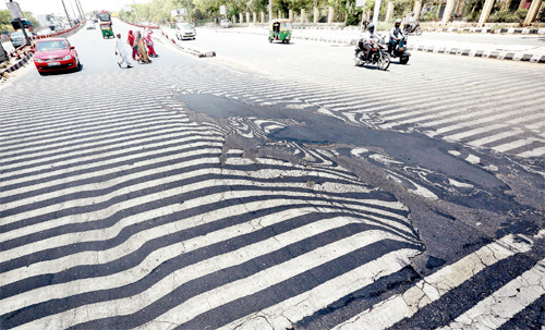 Nắng nóng cao điểm ở Ấn Độ làm tan chảy nhựa đường.